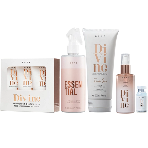 Braé Divine Shampoo+Condicionador 250ml+Queratina Liquida 60ml+Ampola Divine e Revival 13ml