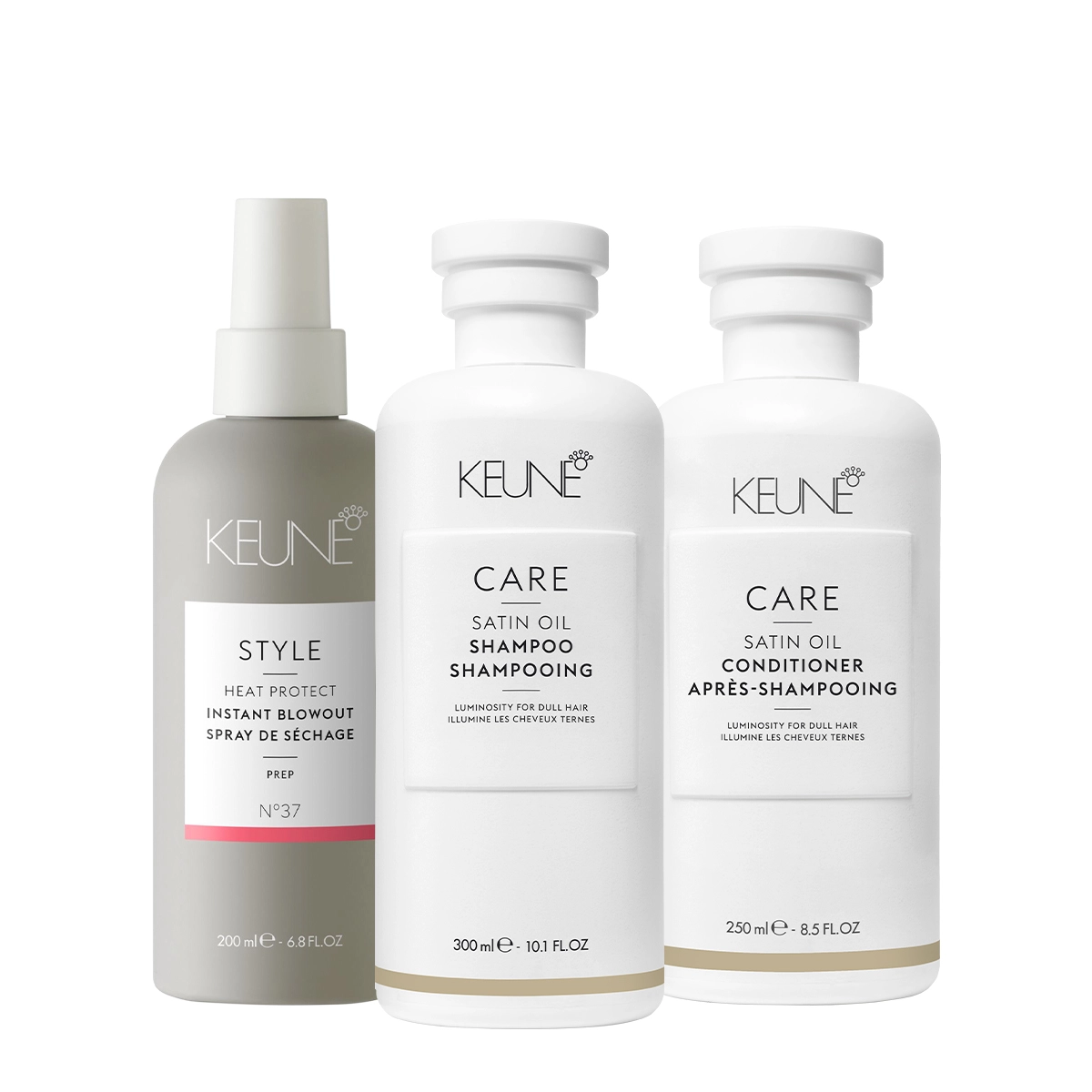 Kit Keune Care Satin Oil Shampoo Condicioandor e Style Instant Blowout 200ml Nº37 (3 produtos)