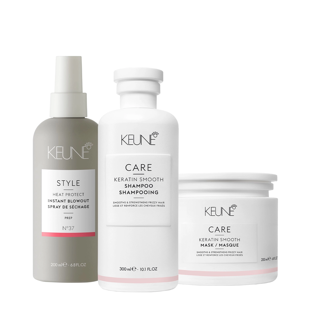 Kit Keune Care Keratin Smooth Shampoo Máscara e Style Instant Blowout 200ml Nº37 (3 produtos)