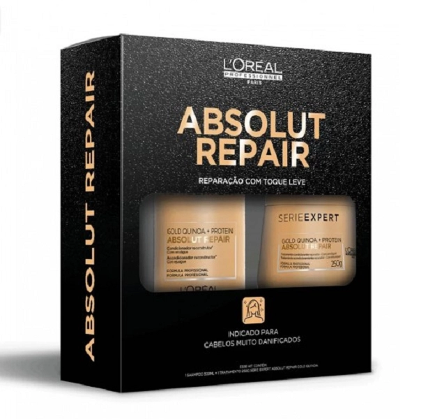L'Oreal Professionnel Absolut Repair Salon Golden Shampoo Condicionador Litro Máscara e Power Repair (4 produtos)