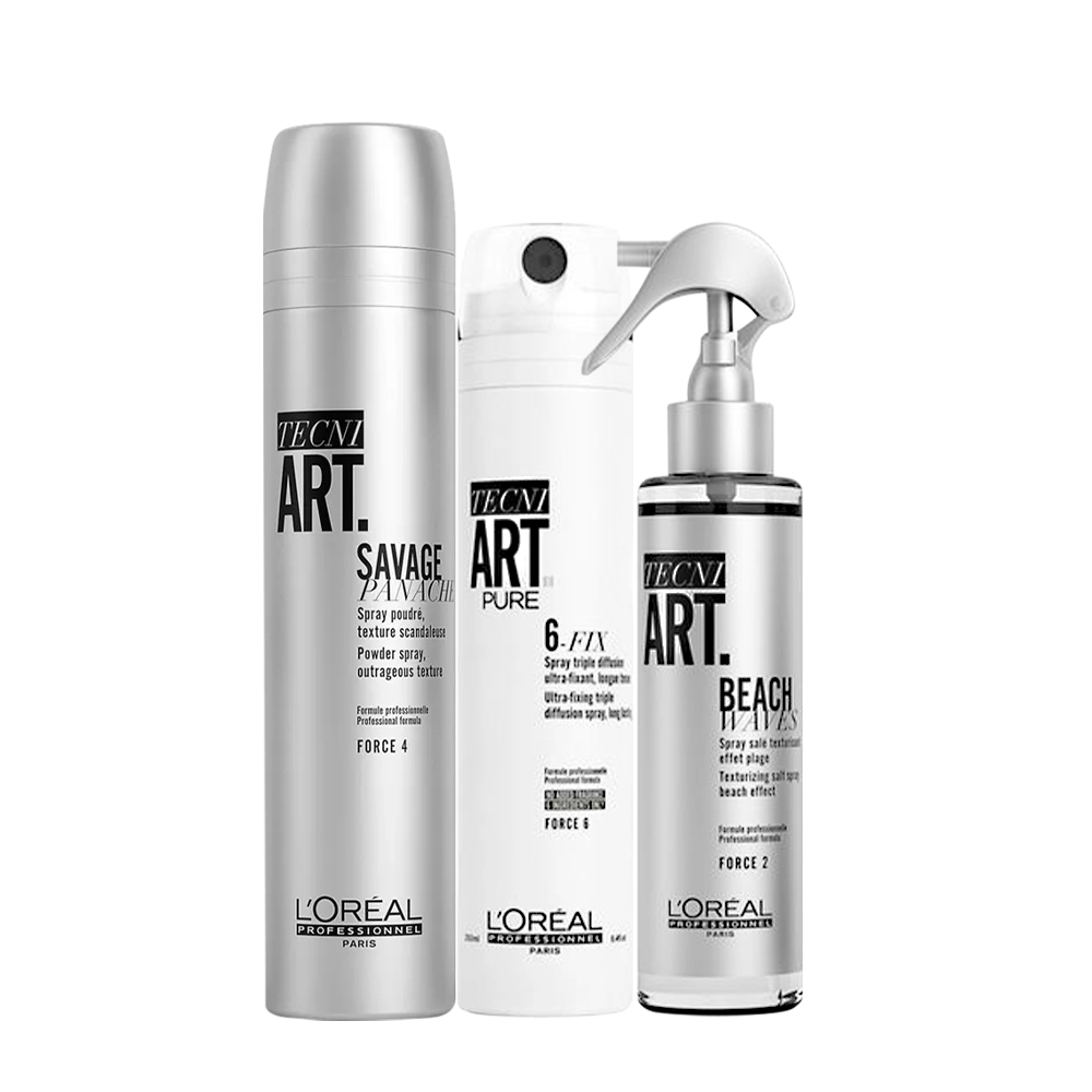 Kit L'Oréal Professionnel Tecni Art Savage Modelador Beach Waves Finalizador e 6 Fix Fixador (3 produtos)