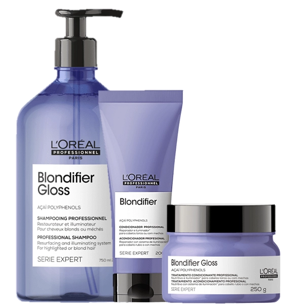 Kit L’Oréal Professionnel Serie Expert Blondifier Gloss Shampoo 750ml Condicionador 200ml e Máscara 250g