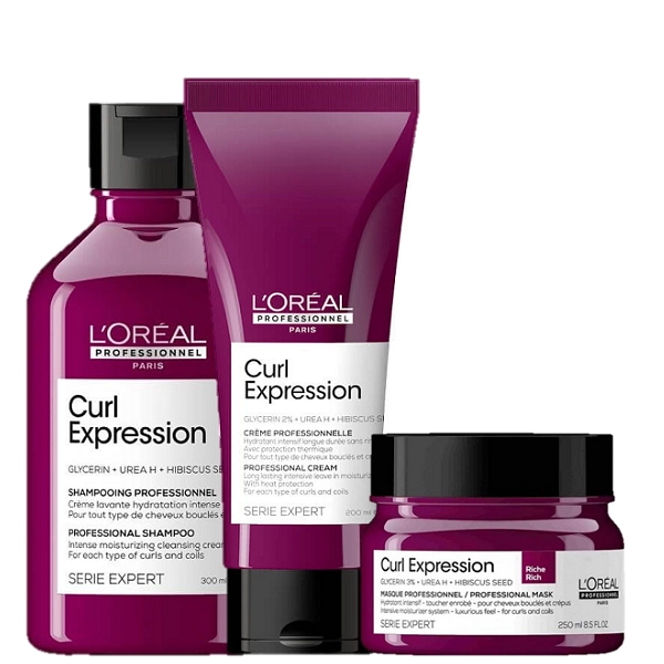 Kit L'Oréal Professionnel Curl Expression Shampoo CREAM 300ml + Creme Capilar 200ml + Máscara RICH 250ml (3 Produtos)