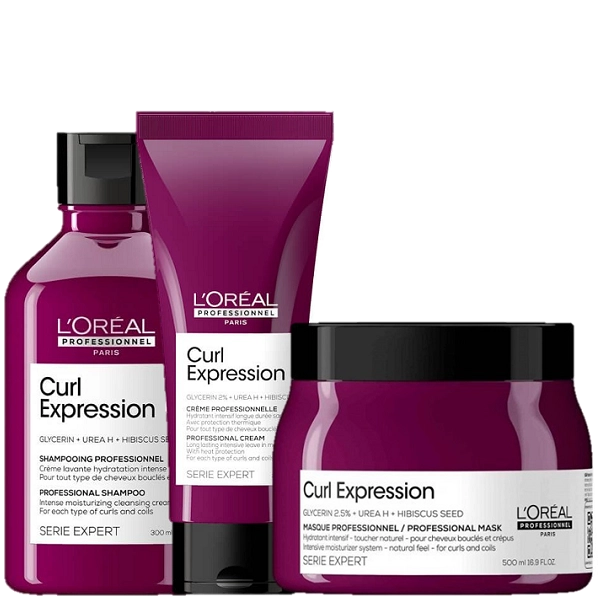 Kit L'Oréal Professionnel Curl Expression Shampoo CREAM 300ml + Creme Capilar 200ml + Máscara 500ml (3 Produtos)