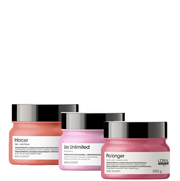 Kit L'Oréal Professionnel Liss Unlimited + Pro Longer + Inforcer - Máscaras 500g (3 Produtos)