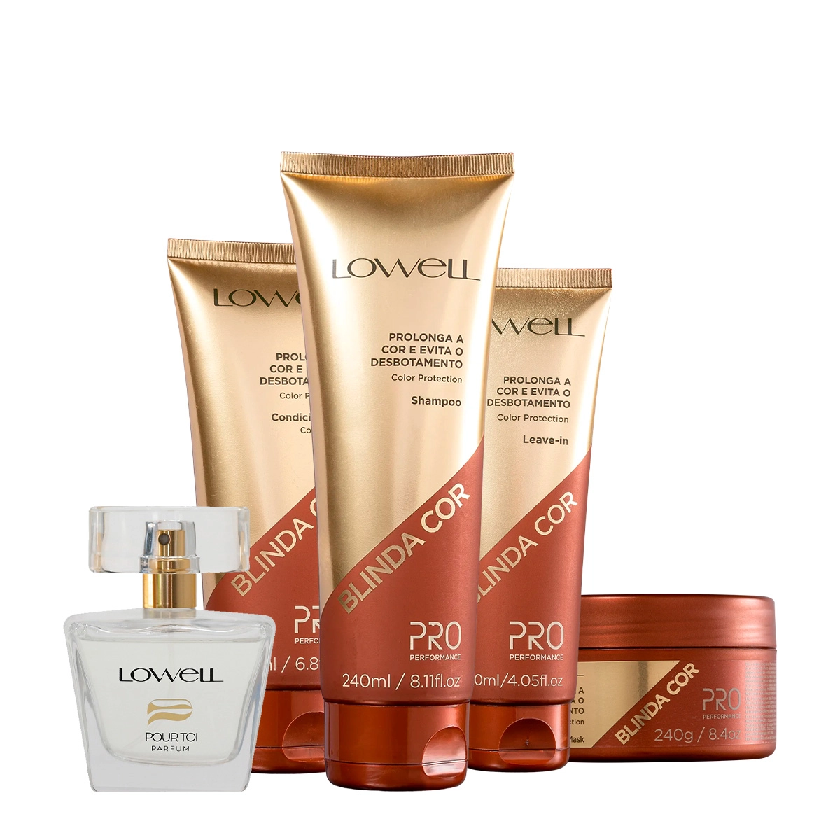 Kit Lowell Blinda Cor Pro Performance Shampoo Condicionador Máscara Leave-in e Pour Toi Parfum (5 produtos)