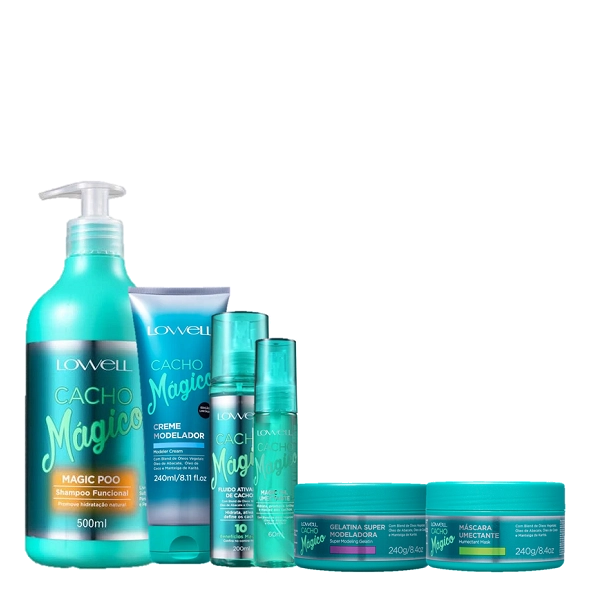 Lowell Cacho Magico Shampoo 500ml Creme Modelador 240ml Fluido 200ml Oleo 60ml e Gelatina 240g