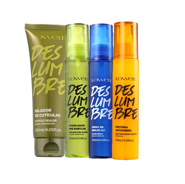 Lowell Deslumbre Leave-in 120ml Pre Baby Liss 120ml Spray de Brilho 120ml e Proteina Anti Quebra 100ml 4 Produtos