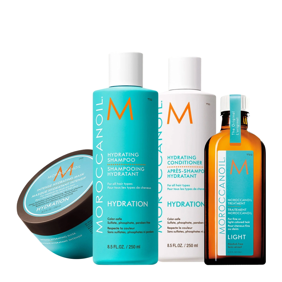 Kit Moroccanoil Hydrating Shampoo Condicionador Máscara e Treatment Óleo Capilar Light 25ml (4 produtos)
