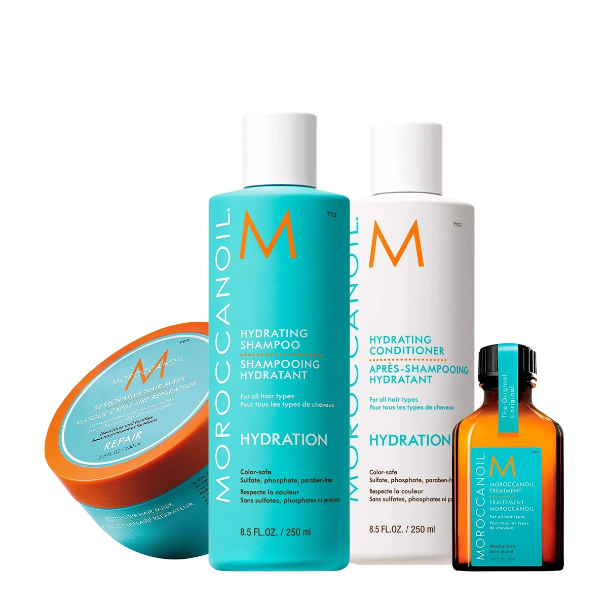 Kit Moroccanoil Hydrating Shampoo Condicionador Máscara e Treatment Óleo Capilar 200ml (4 produtos)