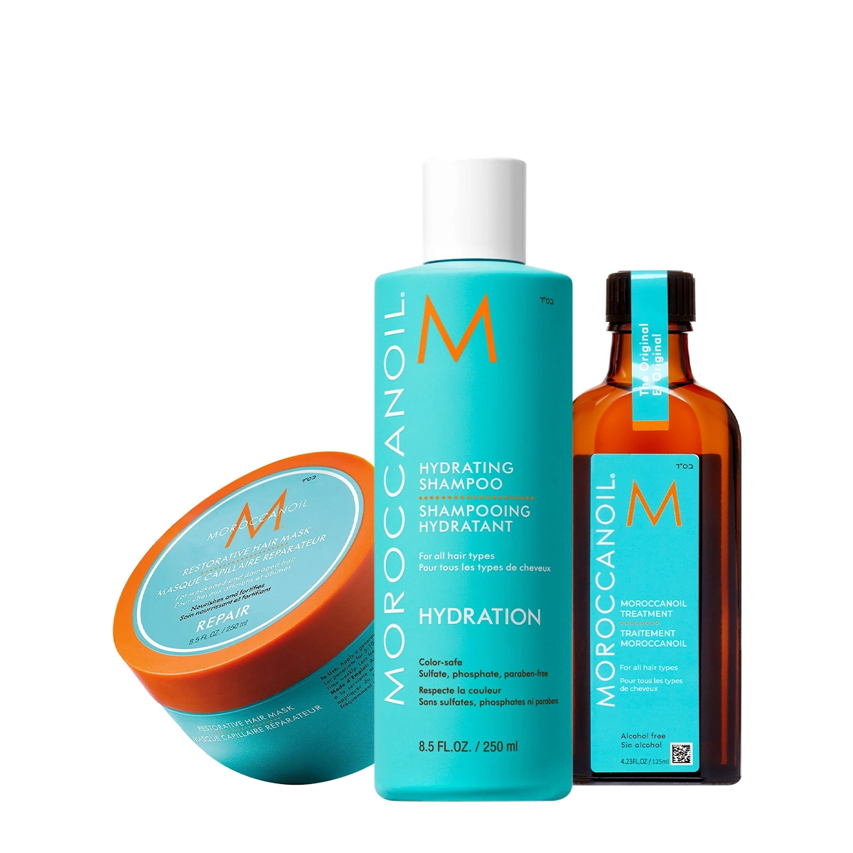 Kit Moroccanoil Hydrating Shampoo Óleo e Repair Máscara de Nutrição (3 produtos)