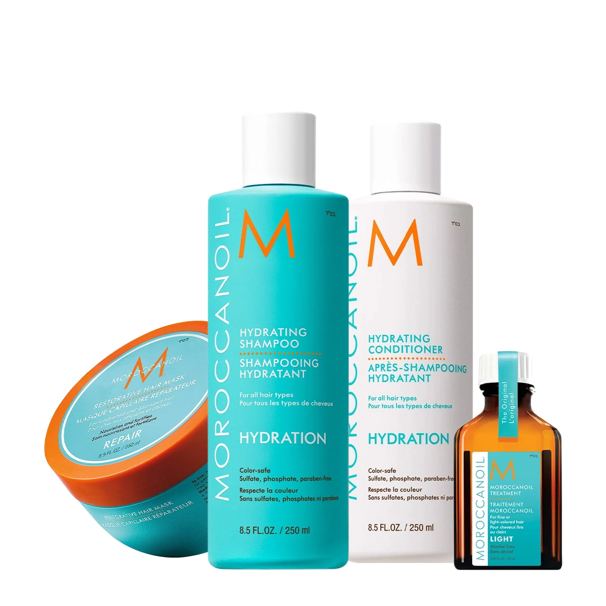 Kit Moroccanoil Hydrating Shampoo Repair Máscara de Nutrição e Óleo Light 25ml (3 produtos)