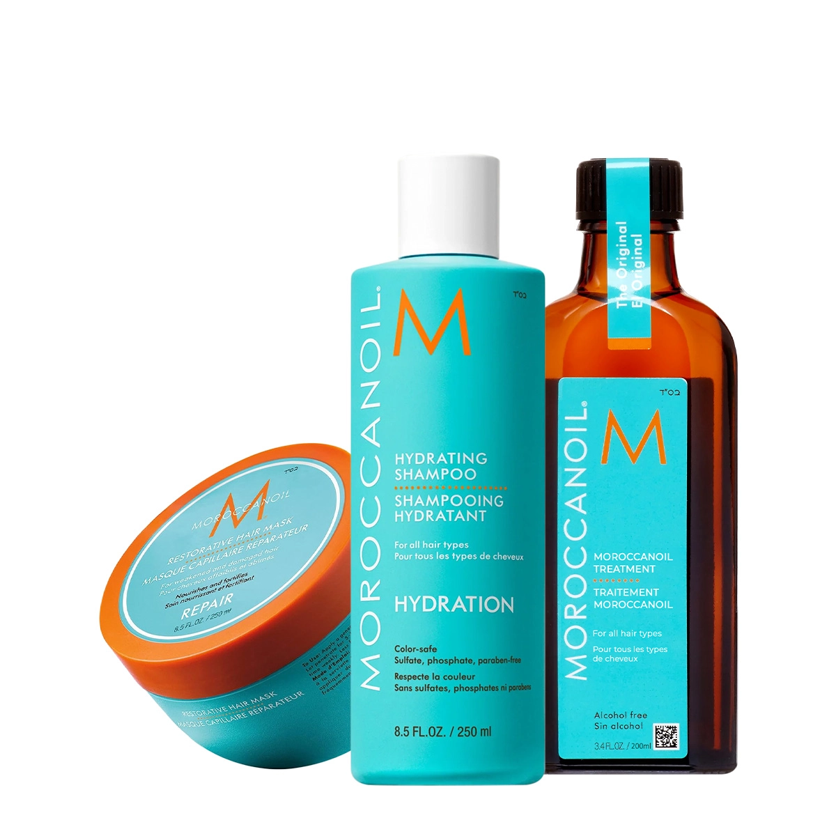 Kit Moroccanoil Hydrating Shampoo Repair Máscara de Nutrição e Óleo 200 (3 produtos)