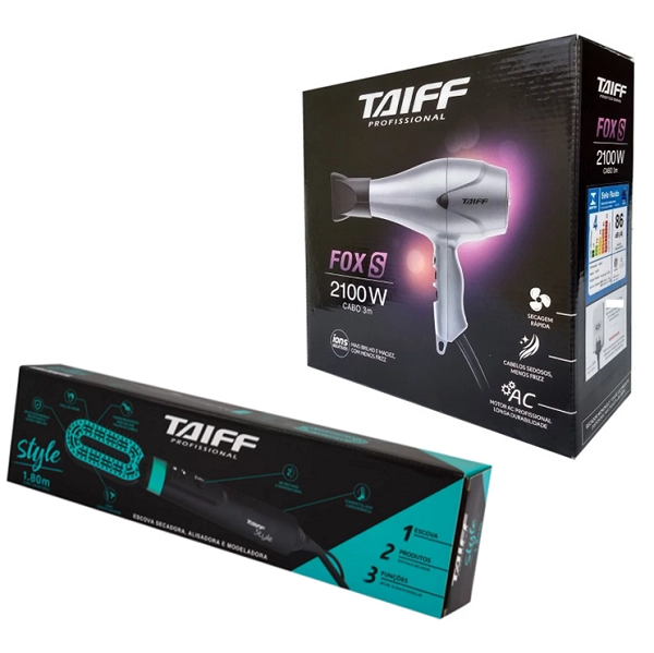 Taiff Secador Fox Ion S 2100w 220V+Style Escova Secadora e Alisadora 110V