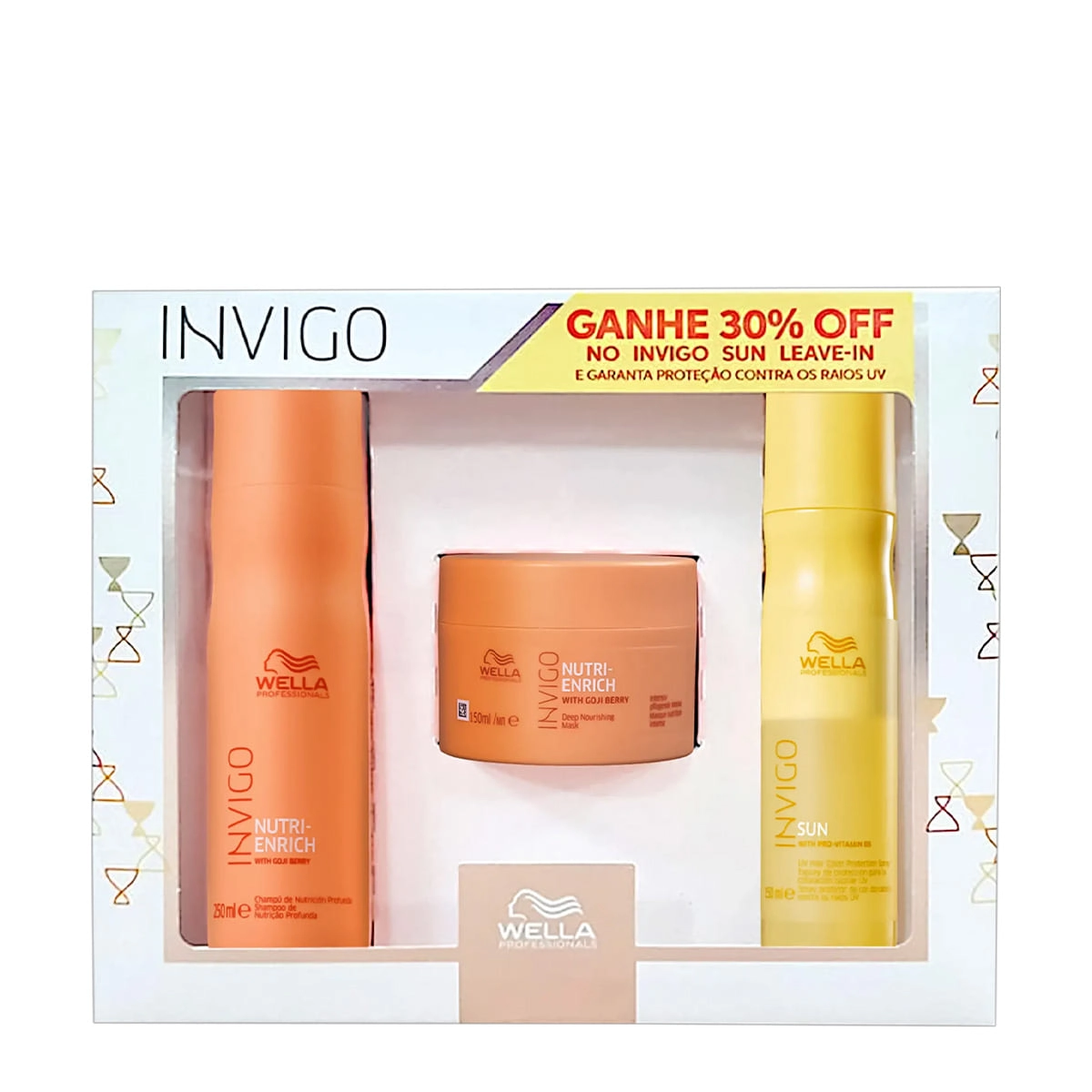 Kit Wella Professionals Invigo Nutri-Enrich Sun Shampoo Máscara Oil Leave-in (3 produtos)