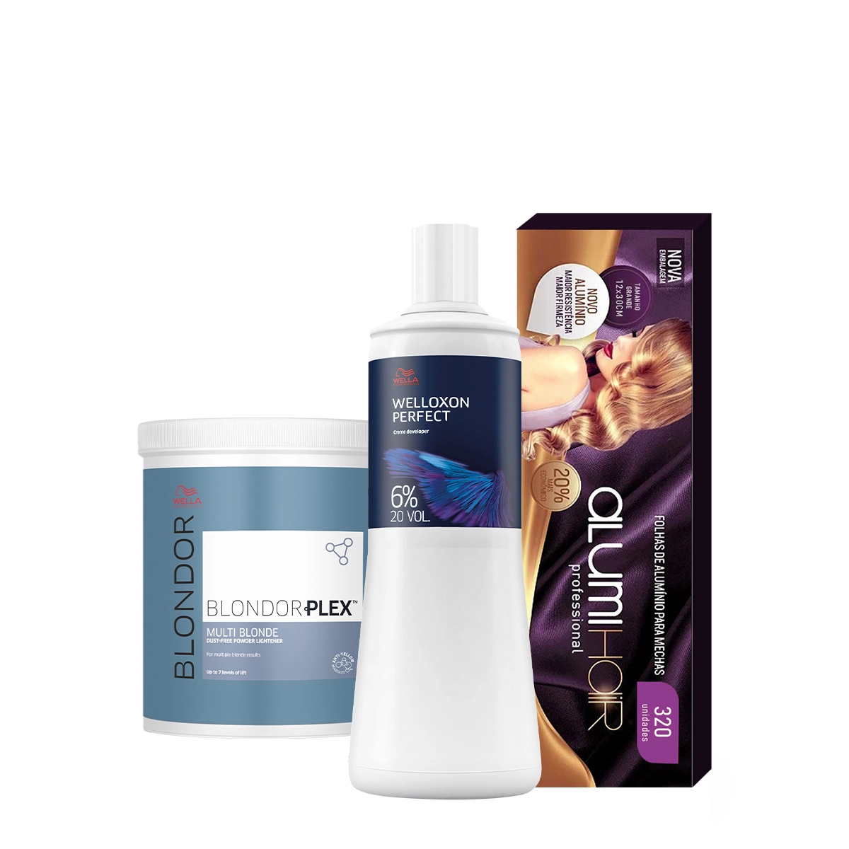 Kit Wella Professionals Blondor 400g Welloxon Perfect 6% 20V AlumiHair (3 produtos)