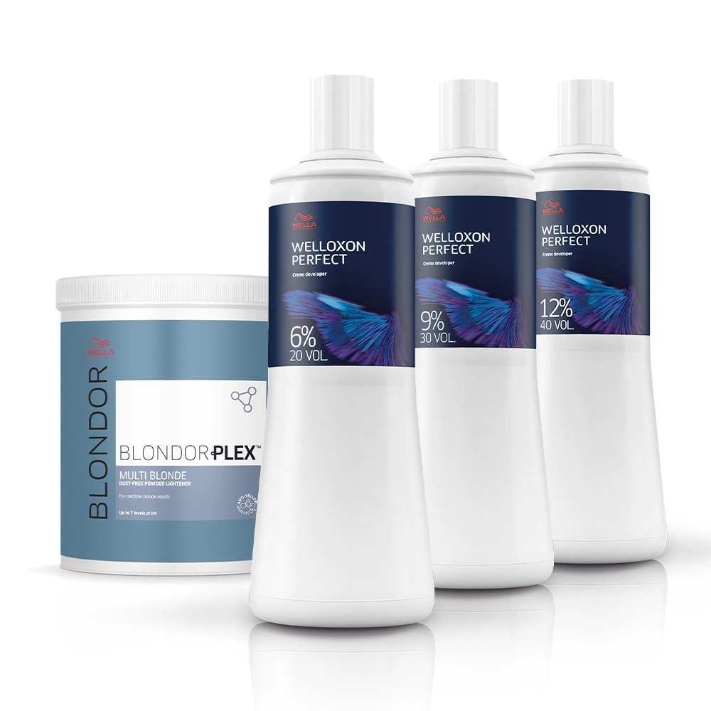Kit Wella Professionals BlondorPlex N1 Multi Blonde + Oxidantes 6% 20V 9% 30V 12% 40V (4 produtos)