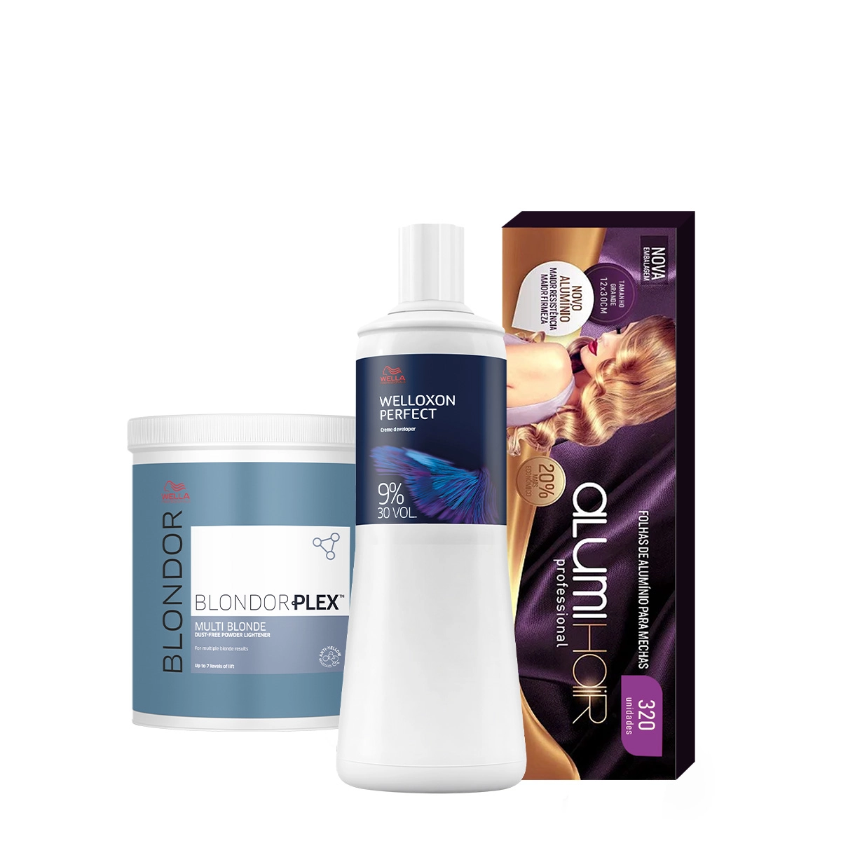Kit Wella Professionals Blondor 400g Welloxon Perfect 9% 30V AlumiHair (3 produtos)