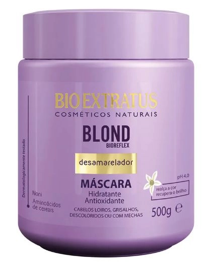 Máscara Desamarelador Blond Bioreflex 500g - Bio Extratus Luminosidade Natural Indicação - Cabelos Loiros, Grisalhos, Descoloridos Ou Com Mechas. Fórmula Avançada, Com Tecnologia Bioreflex Que Promove O Desamarelamento Progressivo Dos Fios. Associa O Poder Reconstrutor Dos Aminoácidos De Cereais E A Ação Antioxidante Do Extrato De Noni, Para Proteger A Cor E Recuperar Os Danos Causados Pela Descoloração. Amáscara Blond Bioreflex Hidrata E Nutre Profundamente Os Fios, Recupera A Saúde E A Luminosidade Natural Dos Cabelos. Modo De Usar: Após Lavar Os Cabelos, Aplique A Máscara Hidratante Blond Bioreflex, Massageando Mecha A Mecha. Para Intensificar O Tratamento Use Touca De Hidratação. Deixe Agir Por 10 Minutos. Enxágue. Para Um Melhor Resultado, Use Toda A Linha Blond Bioreflex. Precauções: Manter Fora Do Alcance Das Crianças. Proteja Da Luz, Do Calor E Da Umidade. Evite Contato Com Os Olhos, Boca E Mucosas. Em Caso De Sensibilização, Suspenda O Uso.
