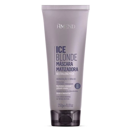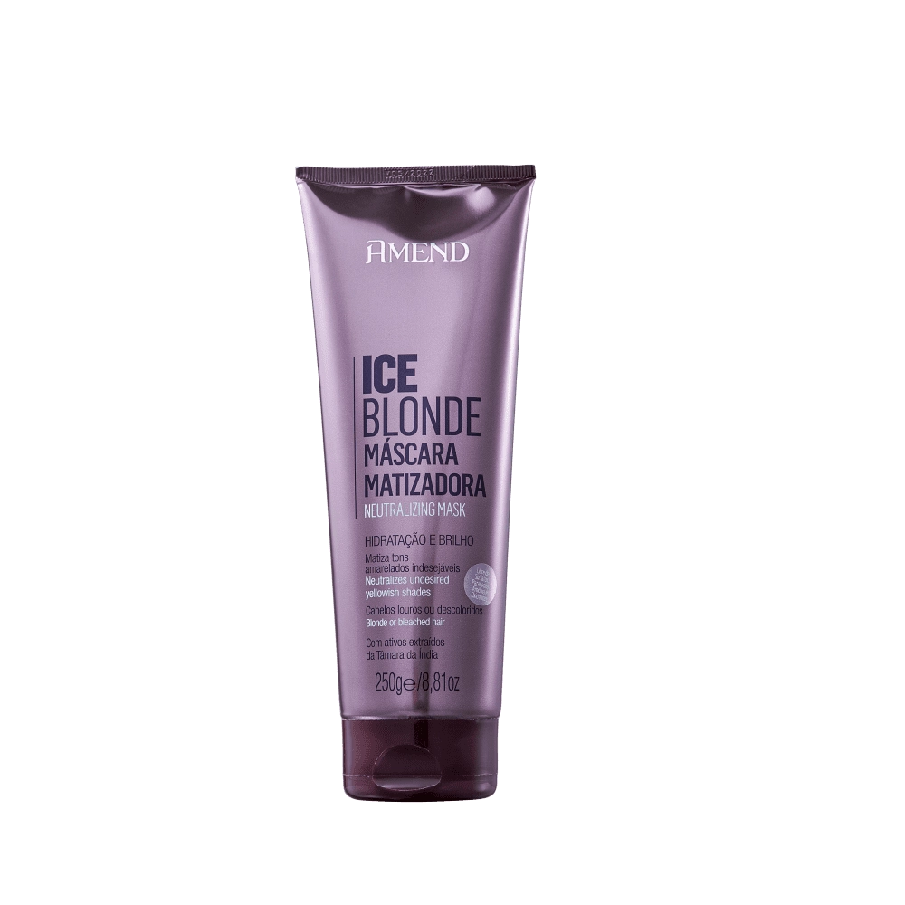 A Máscara Matizadora Amend Ice Blonde possui pigmentos que matizam imediatamente, neutralizando tons amarelados indesejáveis. Os ingredientes ativos auxiliam na recuperação dos cabelos, nutrindo e hidratando intensamente a fibra dos cabelos fragilizados. Prolonga o brilho, protege contra os raios Uv e preserva a cor. Indicação: Matização de tons amarelados em cabelos louros. Modo de usar: Após lavar os cabelos com o Shampoo e o Condicionador Amend de sua preferência, retire o excesso de água com uma toalha e aplique a Máscara Matizadora do comprimento dos fios até as pontas. Deixe agir de 1 a 5 minutos e verifique constantemente o resultado da cor. Assim que atingir a nuance desejada, enxágue os cabelos imediatamente com água morna para retirar totalmente o produto. É recomendado a utilização de luvas plásticas para não manchar as mãos durante a aplicação.