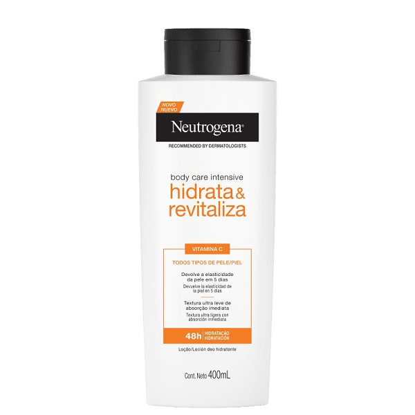 Creme hidratante para todos os tipos de pele. Neutrogena Body Care Intensive Hidrata & Revitaliza combate os efeitos do ressecamento e devolve a elasticidade da pele em 5 dias. Com textura ultraleve, o Creme Hidratante Corporal Neutrogena Body Care Intensive Hidrata & Revitaliza também mantém a hidratação por 48 horas e conta com vitamina C na fórmula para revitalizar, combater a formação de radicais livres e minimizar os efeitos das agressões externas. Espalhe o hidratante por todo o corpo e massageie suavemente até que o produto seja absorvido pela pele. Na hora da hidratação, não esqueça das áreas mais ressecadas como pernas, cotovelos e pés.Neutrogena Body Care Intensive Hidrata & Revitaliza