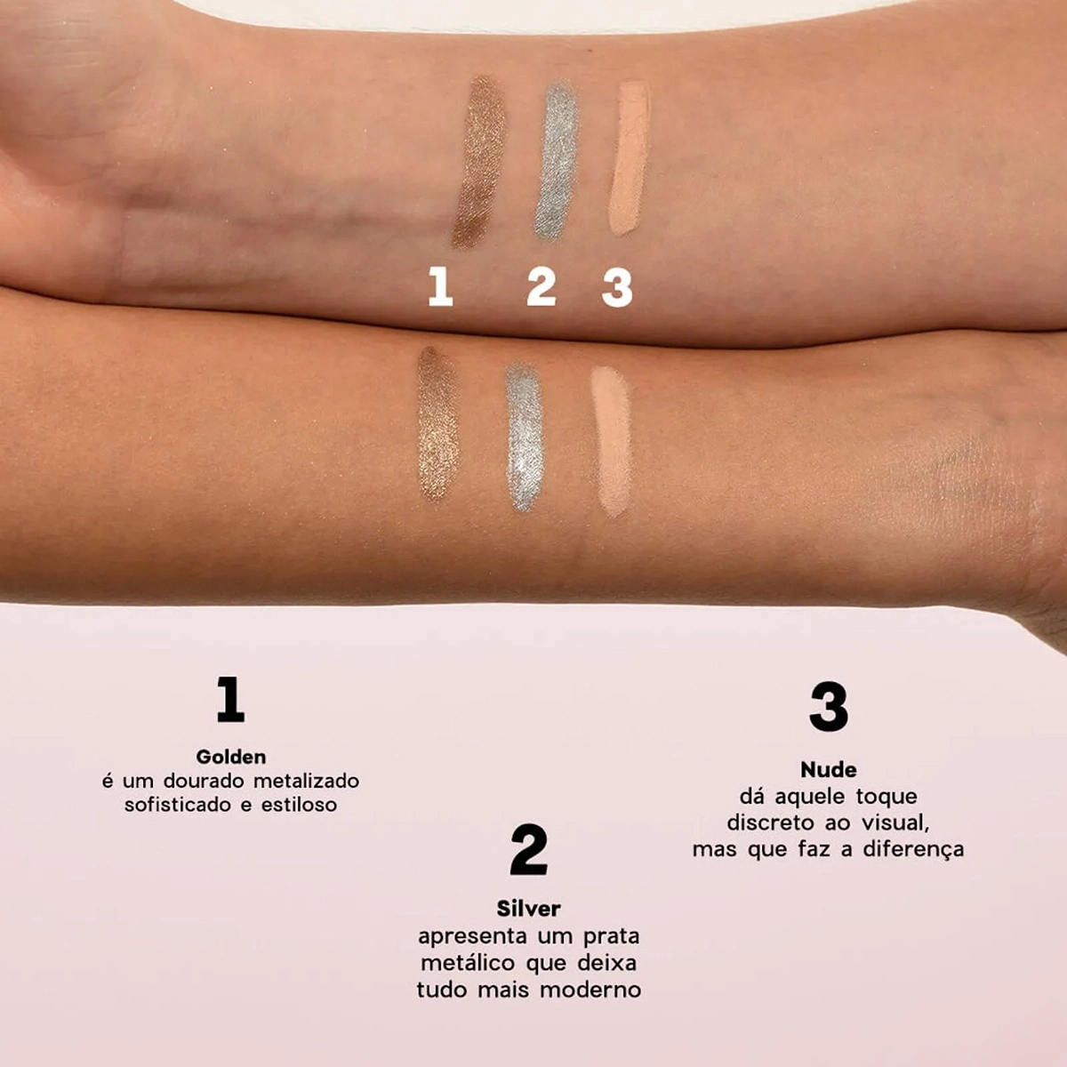 Lápis para olhos que possui textura macia e aplicação fácil, proporcionando um traço preciso, ideal para contornar os olhos com perfeição. Ferramenta perfeita para realçar a beleza do seu olhar. Sua fórmula de alta pigmentação garante cor vibrante em um único traço, enquanto a longa duração mantém a maquiagem impecável por horas, sem borrar ou desbotar. Compatível com sombras e outros produtos de maquiagem, oferece liberdade criativa para você criar looks versáteis, de maquiagens minimalistas a olhos esfumados marcantes. Conselho de AplicaçãoOcéane 4you Shine Nude - Lápis para Olhos 0,7g