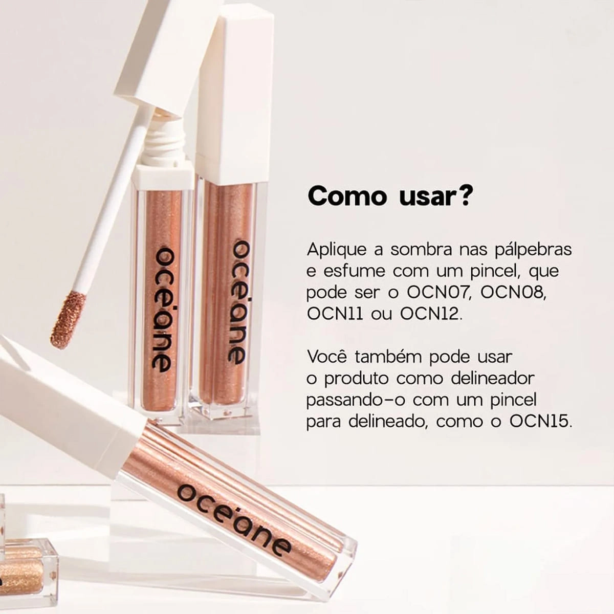 Com Océane Shine & Glow, chegou a sua hora de brilhar! Proporciona um olhar radiante, super estiloso, iluminado e vibrante, sem borrar ou escorrer. Com textura molhada e de rápida secagem, esfuma com facilidade e confere um efeito glow luxuoso, com muito glitter. Seu olhar vai se destacar com o mesmo encanto de uma pedra preciosa! Conselho de AplicaçãoOcéane Limited Shine and Glow Rose Quartz - Sombra Líquida 4,2g