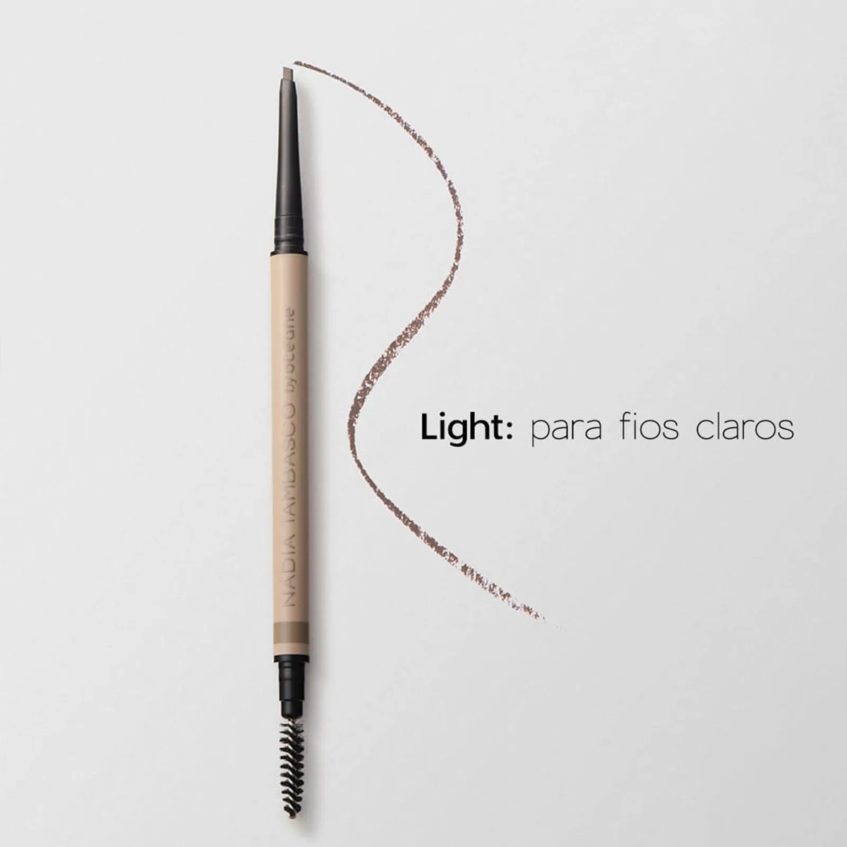 Lápis de sobrancelha. Multifuncional, o lápis de sobrancelha Océane Slim Brow conta com ponta retrátil chanfrada e uma ponteira com escovinha, para modelar os fios. Enriquecido com vitamina E e óleo de oliva, proporciona um efeito de micropigmentação, com alta fixação e textura macia, garantindo um resultado impecável. Com sua ponta ultrafina, define e preenche a sobrancelha com naturalidade. Conselho de AplicaçãoOcéane Nádia Tambasco Slim Brow Pencil Light - Lápis de Sobrancelha 0,07g