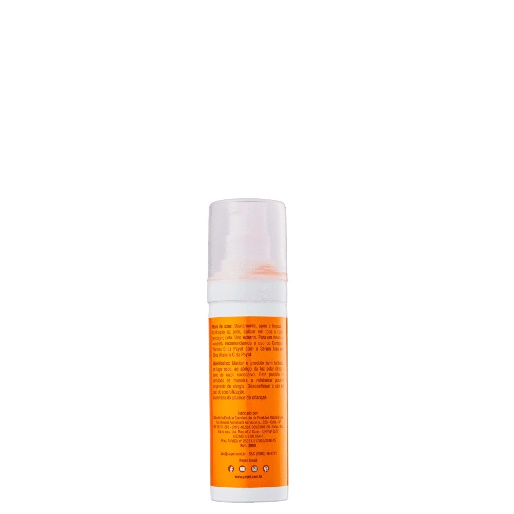 Payot Complexo Vitamina C Sérum anti-idade para todos os tipos de pele. Payot Complexo Vitamina C confere firmeza, luminosidade e hidratação intensa, além de reduzir a aparência dos sinais de idade e prevenir o envelhecimento precoce. O Complexo Vitamina C, da Payot, penetra profundamente na pele para estimular a produção de colágeno, melhorar a elasticidade e deixar uma aparência jovem e fresca. Combate a ação dos radicais livres para evitar o surgimento de rugas e linhas finas, além de atenuar as já existentes. Conselho de Aplicação Aplique sobre a pele limpa, de maneira uniforme, pela manhã e pela noite.