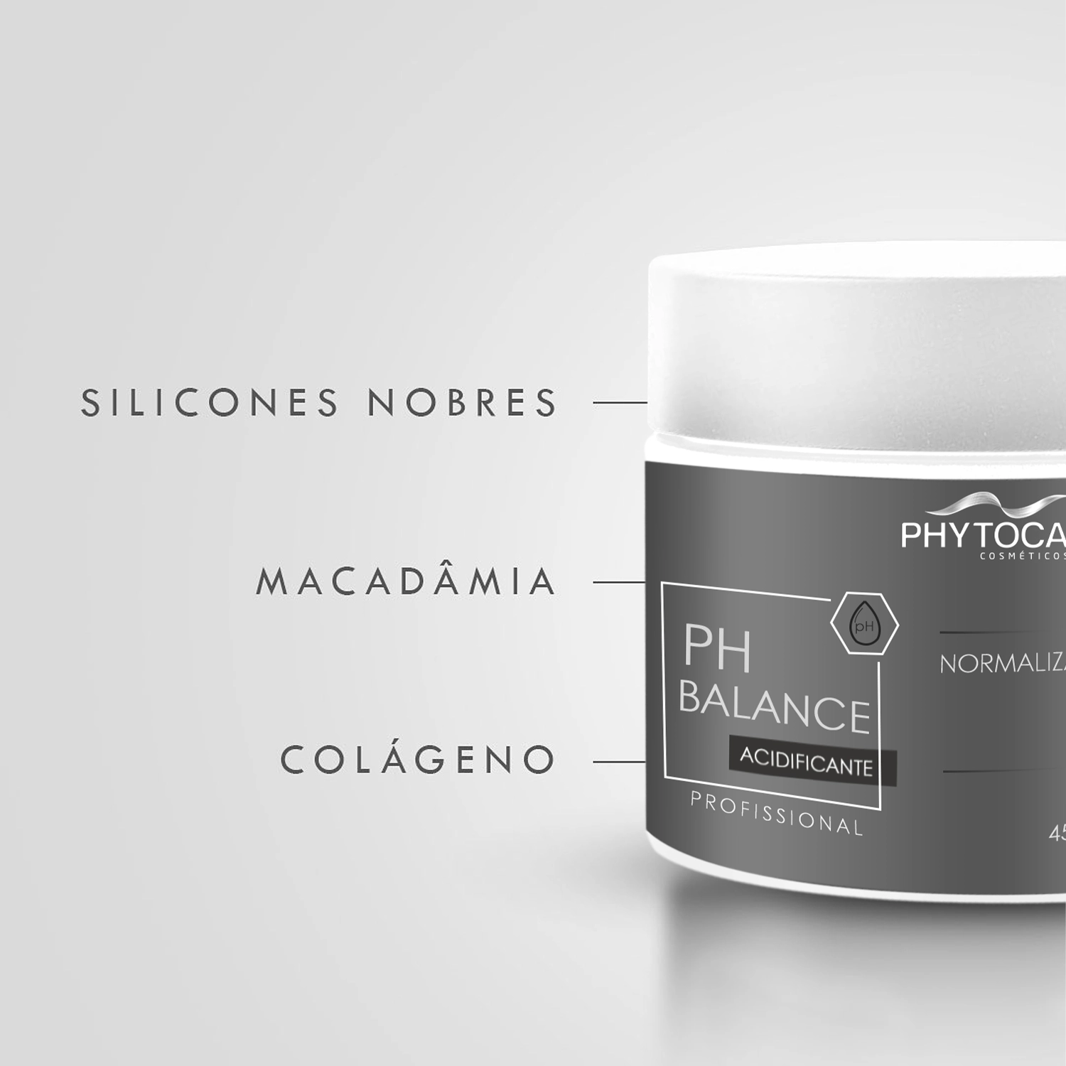 Recupere o equilíbrio dos seus fios após coloração, luzes ou alisamentos com o PH Balance Phytoca. Com ação 2 em 1, este tratamento regula o pH dos cabelos, reduz o frizz e previne pontas duplas. Enriquecido com óleo de macadâmia, colágeno e silicones nobres, oferece brilho intenso, elasticidade e proteção contra agressões externas.Phytoca Cosmetics Ph Balance - Tratamento Acidificante 450g