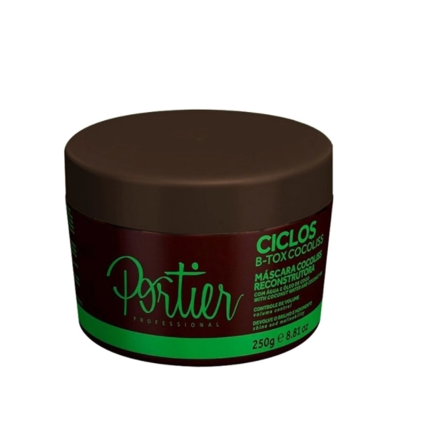 Portier Ciclos B-Tox Cocoliss é desenvolvida com uma nova tecnologia capaz de restaurar e prevenir o envelhecimento dos fios. Formulada com água e óleo de coco, proporciona uma ação hidratante, lubrificante e anti frizz aos cabelos ressecados e sem vitalidade. Além do mais, proporciona o realinhamento perfeito da superfície cuticular através de uma ação emoliente e reconstrutora, conferindo leveza, suavidade e um caimento perfeito aos fios secos e rebeldes.