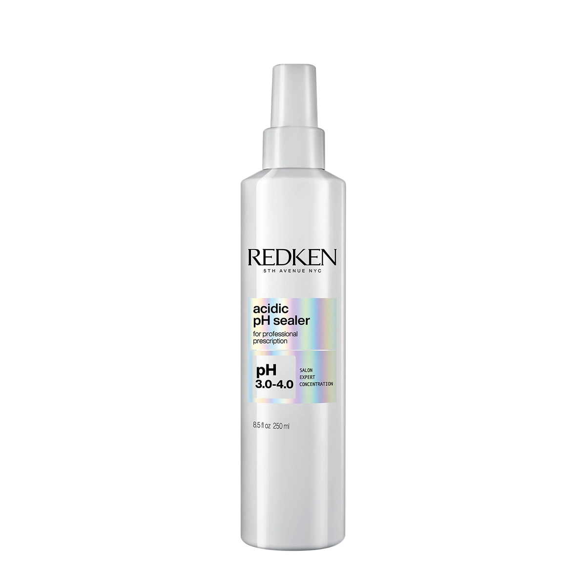 Use o pH Sealer em cooperação com o Redken Acidic Moisture Concentrate para direcionar o dano, com o Redken Acidic Protein Amino Concentrate para neutralizar a secura, ou ambos para um tratamento multiuso. Depois de aplicar essas duas fórmulas e enxaguar bem, pulverize de 10 a 15 bombeadas da raiz às pontas e deixe agir por um minuto. Termine enxaguando novamente e modelando o cabelo conforme desejado.
