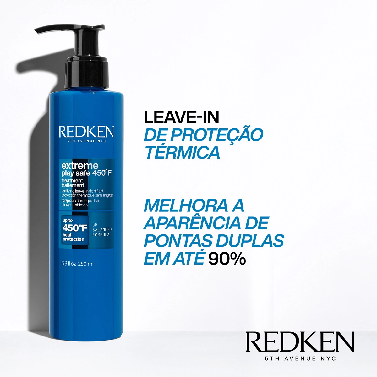 Para cabelos danificados ou sensibilizados. Com ação 3 em 1, Redken Extreme Play Safe repara dos danos, fortalece a fibra e protege os fios do calor de até 230°C. Enriquecido com proteína vegetal e turmalina, repara os fios, reduzindo visivelmente a aparência de pontas duplas, a quebra e com ação antifrizz. Redken Extreme Play Safe - Leave-in 250ml