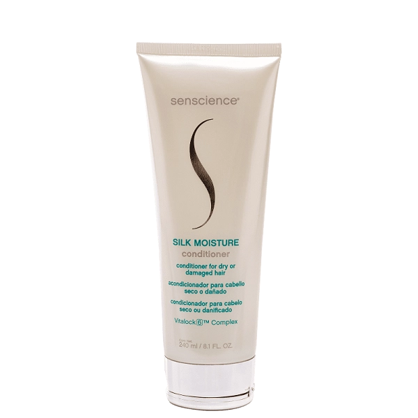 Senscience Silk Moisture Conditioner - Condicionador 240ml: condicionador para cabelos secos e danificados. Desembaraça e condiciona, hidratando os fios. Ele fortalece a fibra capilar e deixa o cabelo com uma maciez incrível!