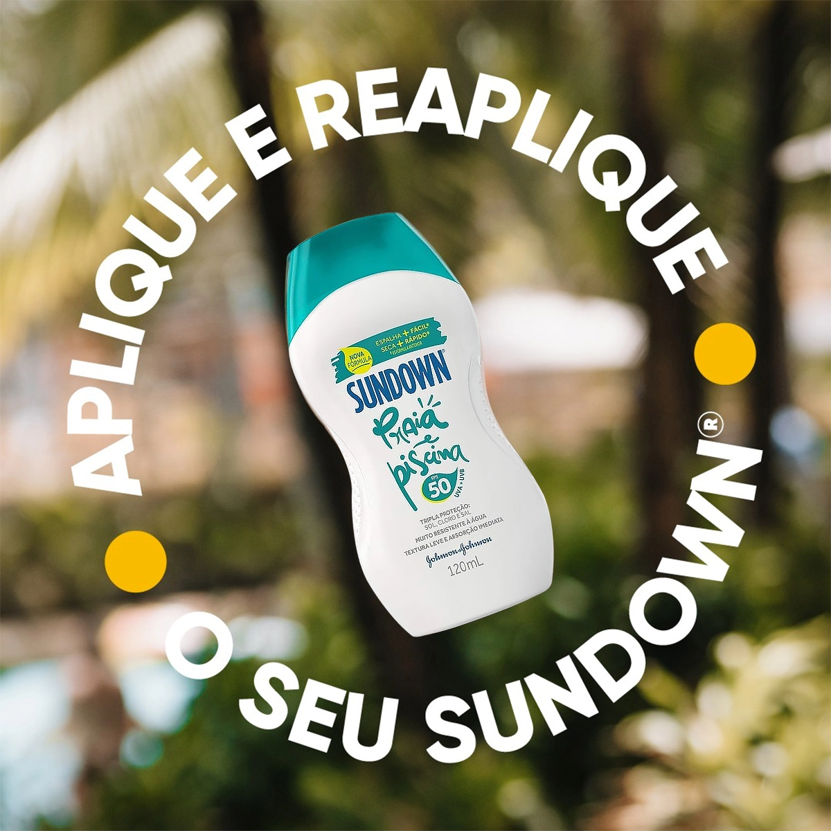Para todos os tipos de pele. Oferece proteção imediata, com textura leve, não oleosa e de fácil aplicação. Auxilia na proteção eficaz contra os raios UVA/UVB e elementos agressores, como cloro e água salgada. Sua tripla proteção é 3x mais resistente à água e ao suor. Previve o envelhecimento precoce e mantém a pele saudável. Conselho de Aplicação Sundown Praia e Piscina FPS50 - Protetor Solar 120ml