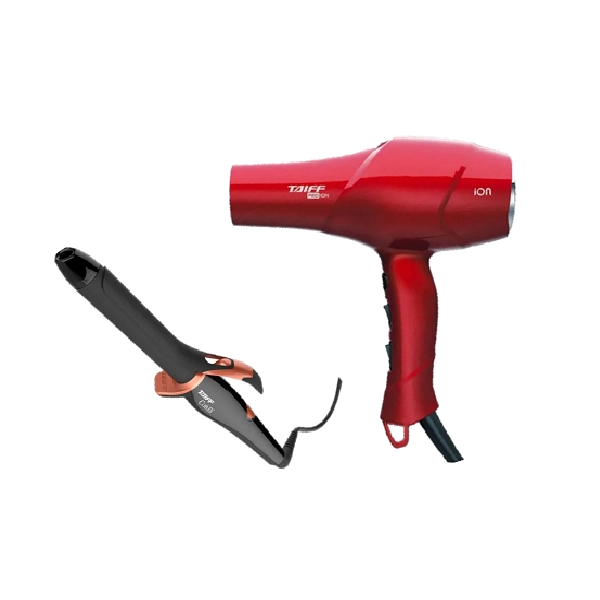 Taiff Secador de Cabelo Red Ion 1900W 110V e Modelador Curves 1 Bivolt Supreenda-se com esse secador de cabelos Taiff Red Íon, que vai deixar seus fios muito mais brilhantes e saudáveis. Ele emite 67 milhões de íons negativos, que ajudam no selamento da cutícula e reduzem a eletricidade estática. Resultado: cabelos mais lisos, sedosos e livres do temido frizz. Além disso, oferece cinco temperaturas diferentes, que permitem você modelar o cabelo como quiser. Modelador Curves 1 Bivolt Qual cacho te define? Nós definimos todos. Uma linha completa para você usar e abusar dos cachos. O modelador Curves, com temperatura de 210°C, tem uma diversidade de tamanhos para todos os resultados; 13mm, 25mm e 32mm. Tubo e pinça com pintura de cerâmica para proteger os fios e garantir cabelos com muito mais brilho. Com design moderno e ergonômico, os modeladores Curves têm uma ponta termoplástica que protege do calor, apoio de pinça que facilita sua elevação e led indicando quando está ligado. Tem bivolt automático e seu cabo giratório de 3 metros de comprimento dá maior mobilidade e agilidade