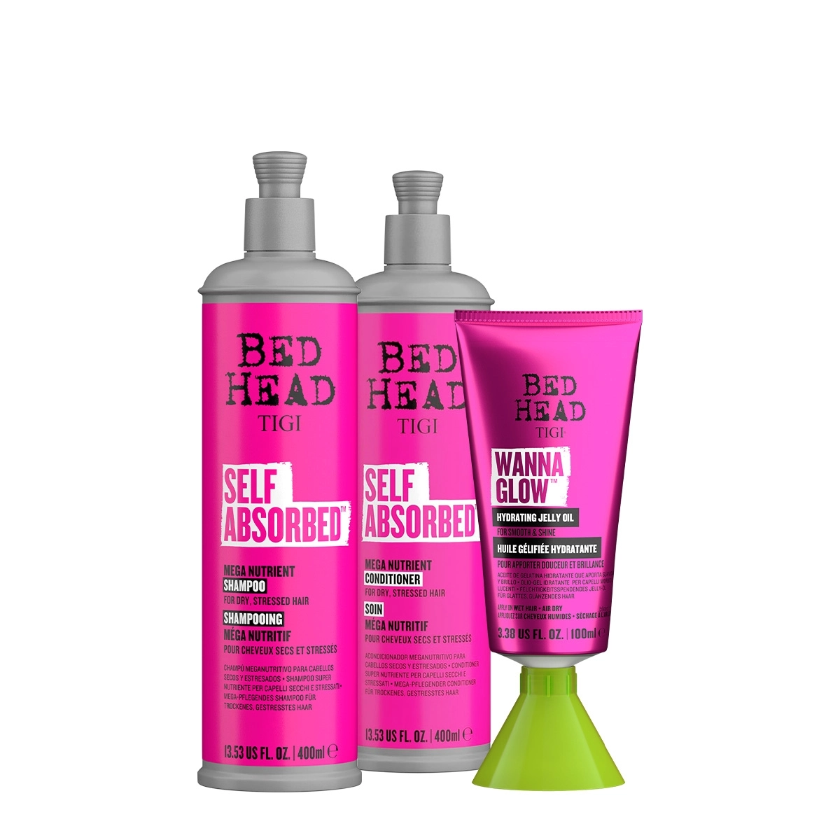 Este Kit Contém Tigi Bed Head Self Absorbed - Condicionador 400ml: condicionador nutritivo repara visivelmente os cabelos danificados e fortalece os fios fracos de dentro para fora. Para cabelos super brilhantes, hidratados e sem frizz. Condiciona os fios sem pesar, penetra a fibra capilar e restaura as proteínas do cabelo para manter o aspecto saudável. Tigi Bed Head Wanna Glow - Finalizador Capilar 100ml: finalizador para cabelos secos. Fornece umidade para os fios, deixando-os hidratados e nutridos. Com textura suave e brilhante, indicada tanto para uso profissional quanto para uso doméstico. Tenha resultados de salão a qualquer hora do dia. Formulado com soro de óleo de geleia que promove brilho intenso para os fios, além de combater o frizz. Para cabelos macios, saudáveis e com uma deliciosa fragrância de pera. Tigi Kit Bed Head Self Absorbed Shampoo Condicionador e Finalizador Capilar (3 produtos)