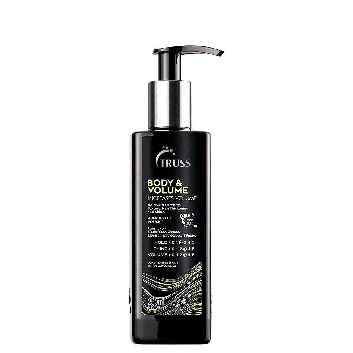 Leave-in para cabelos finos, com pouco volume e tendência à raiz oleosa. Truss Body & Volume proporciona volume, textura, corpo e movimento. Truss Body & Volume é um tratamento termoativado para aumento de volume dos fios, sem pesar. Além disso, auxilia na recuperação da estrutura natural dos fios com ação antienvelhecimento e proteção térmica para promover maciez e brilho. Conselho de Aplicação Aplique sobre o cabelo úmido e seque com o secador. Para modelar os fios com ainda mais volume, use uma escova redonda grande enquanto seca e direcione os fios para fora do rosto. Truss Body e Volume Leaving 250ml