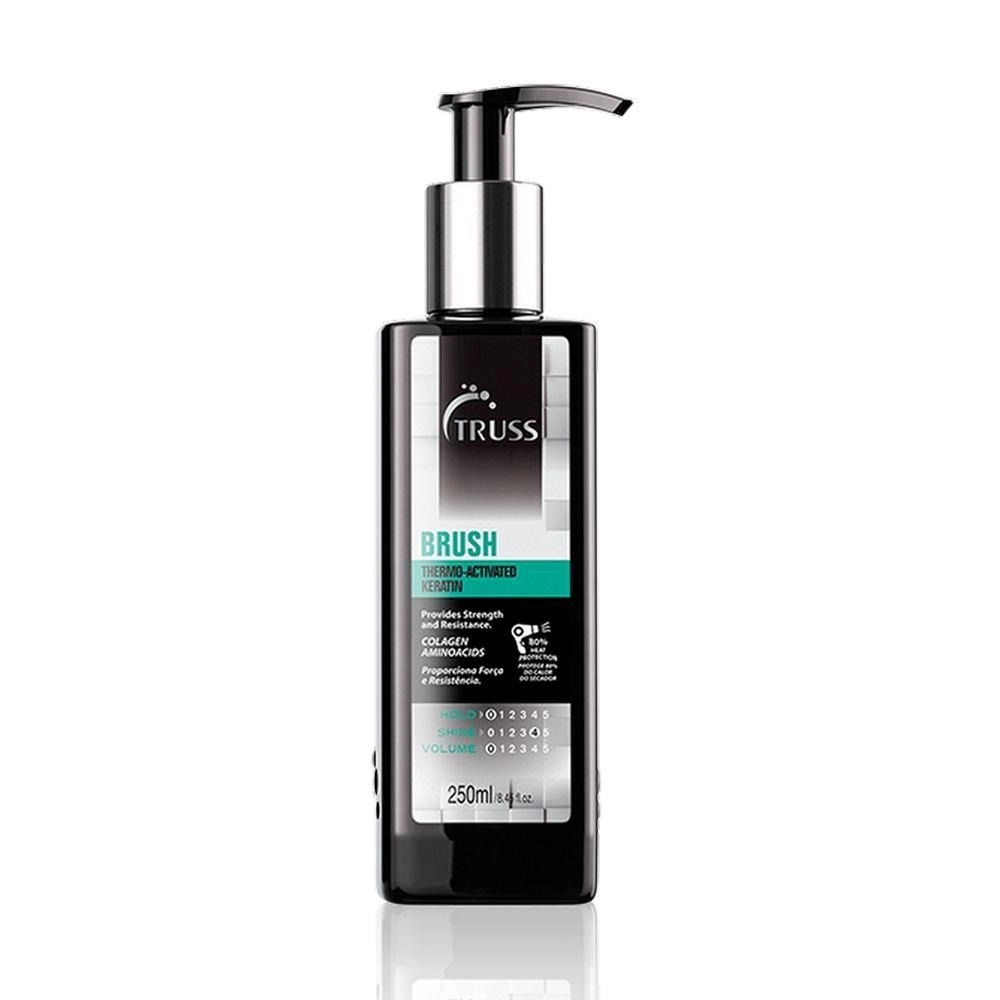 Creme termoativo para cabelos danificados. Truss Brush confere resistência às fibras quebradiças e protege das agressões externas. Conselho de Aplicação Aplique uma pequena quantidade do finalizador na palma das mãos e distribua sobre comprimento e pontas dos cabelos úmidos. Depois, seque seus fios com o auxílio do secador e modele com a chapinha para seus fios ficarem macios e sedosos. Use uma vez por semana. Resultado Cabelos resistentes, protegidos, suaves e macios.Truss Brush Keratin Leave-in 250ml