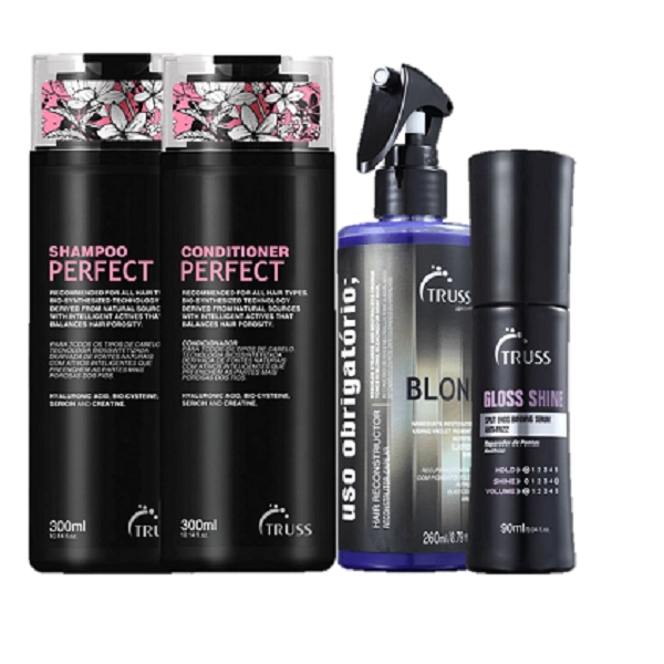 Truss Perfect Kit Shampoo 300ml Condicionador 300ml Uso Obrigatorio Blond 260ml Gloss Shine 90ml