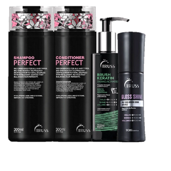 Truss Perfect Shampoo 300ml Condicionador 300ml Brush Keratin 250ml Gloss Shine 90ml