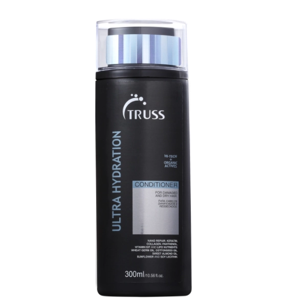Condicionador para cabelo ressecado. Truss Ultra Hydration Plus hidrata e aumenta a resistência, o brilho e a maciez dos fios. Conselho de aplicação Após lavar o cabelo, distribua o condicionador do comprimento às pontas dos fios e massageie. Deixe em pausa por 2 minutos e enxágue bem.Truss Ultra Hydration - Condicionador 300ml