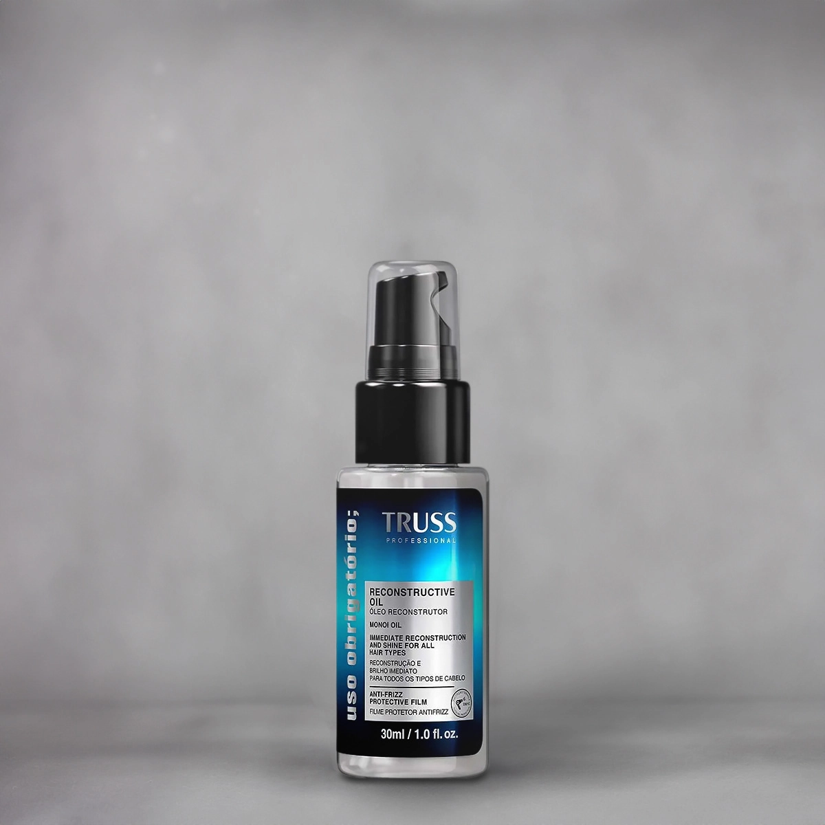 Tratamento capilar inovador desenvolvido especialmente para revitalizar cabelos danificados, agindo interna e externamente nos fios. Oferece blindagem completa contra danos térmicos, químicos e ambientais, além de proporcionar maciez, flexibilidade e controle do frizz. Sua textura leve garante rápida absorção e um acabamento impecável, sem pesar nos fios. Reúne o poder de um condicionador líquido, leave-in e tratamento profundo em uma única fórmula. Conselho de AplicaçãoTruss Uso Obrigatório - Óleo Capilar 30ml