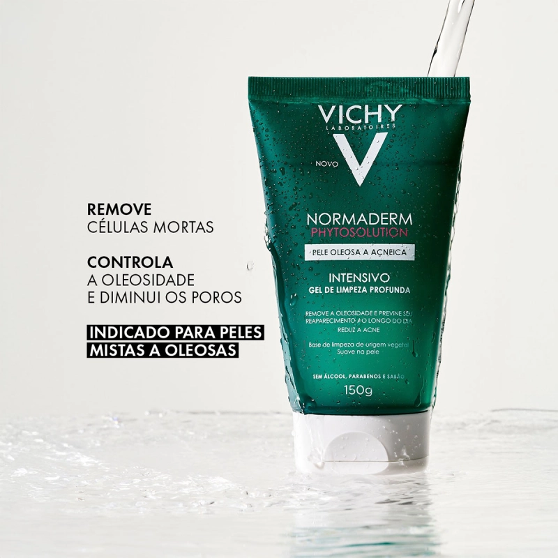 Este Kit Contém Vichy Normaderm Phytosolution Intensivo - Gel de Limpeza 150g: limpa profundamente, controla a oleosidade, reduz a aparência dos poros e ajuda a prevenir cravos e espinhas. Com textura em gel refrescante e fragrância suave, proporciona sensação imediata de pele limpa, purificada e sequinha, sem ressecar. Vichy Normaderm Phytosolution Intensivo - Gel de Limpeza 40g: remove impurezas e excesso de oleosidade sem ressecar, mantendo o equilíbrio natural da pele. Limpa profundamente, ajuda a controlar o brilho e previne o reaparecimento da acne. Textura em gel refrescante e fragrância leve. Conselho de Aplicação Vichy Normaderm Phytosolution Intensivo - Limpeza Profunda e Controle da Oleosidade