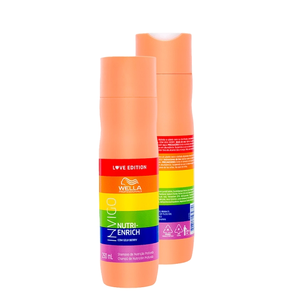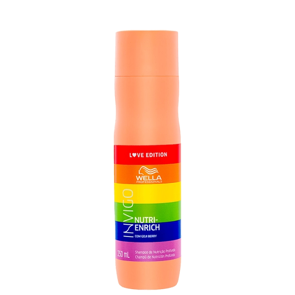 Shampoo para cabelos secos ou desgastados. Wella Professionals Nutri Enrich Love Edition confere nutrição e hidratação para os cabelos, devolvendo vida e maciez. O Shampoo Wella Professionals Nutri Enrich Love Edition contém em sua fórmula Ácido Oleico e Pantenol, que promovem hidratação e nutrição para o cabelo, Vitamina E que protege o cabelo de maior estresse e Goji Berry, que é rica em vitaminas e peptídeos. Conselho de Aplicação Aplique o produto no cabelo molhado e massageie desde o couro cabeludo até fazer espuma. Enxágue bem. Nossos Experts Ensinam No momento de enxaguar, tenha a certeza de que retirou todo o produto do cabelo. Deixe a água passar entre os fios até não sentir mais nenhuma viscosidade, apenas água.Wella Professionals Nutri Enrich Love Edition