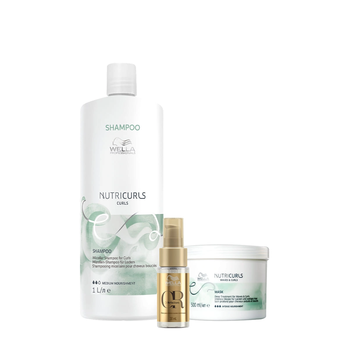 Wella Professionals Nutricurls Shampoo 1L+Máscara 500ml+Oil Reflections 30ml